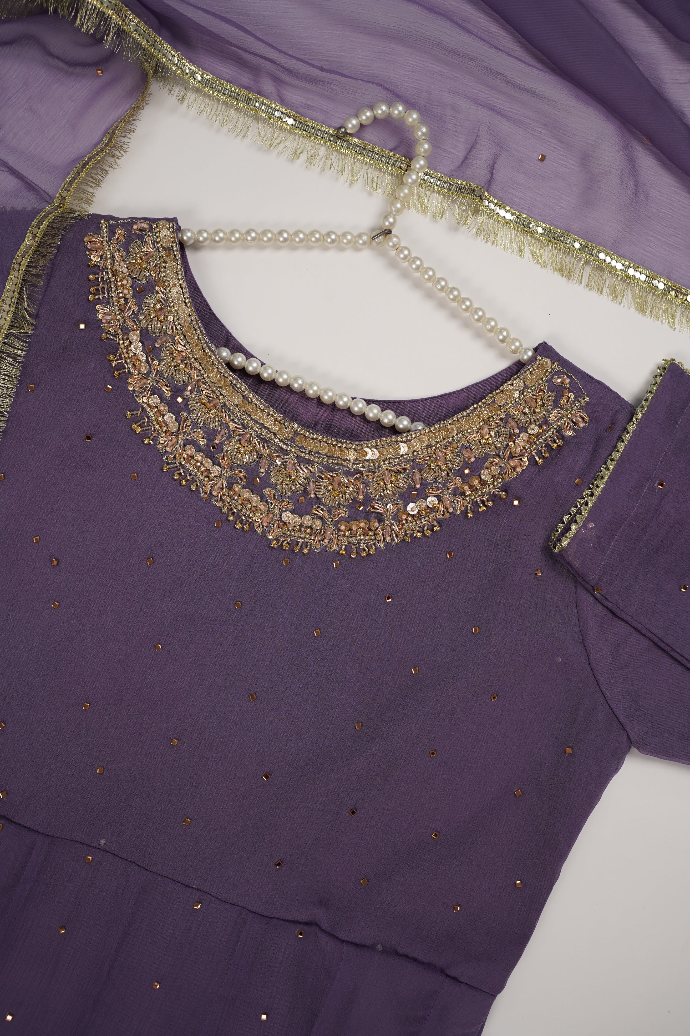 A Shafoon maxi dress is a flowing, floor-length dress made from chiffon fabric. It's known for its lightweight, sheer, and airy qualities, making it a popular choice for Part Events and For Eid events. The dress typically features a loose, comfortable fit, with a variety of styles including those with sleeves With fully Adhaa Work