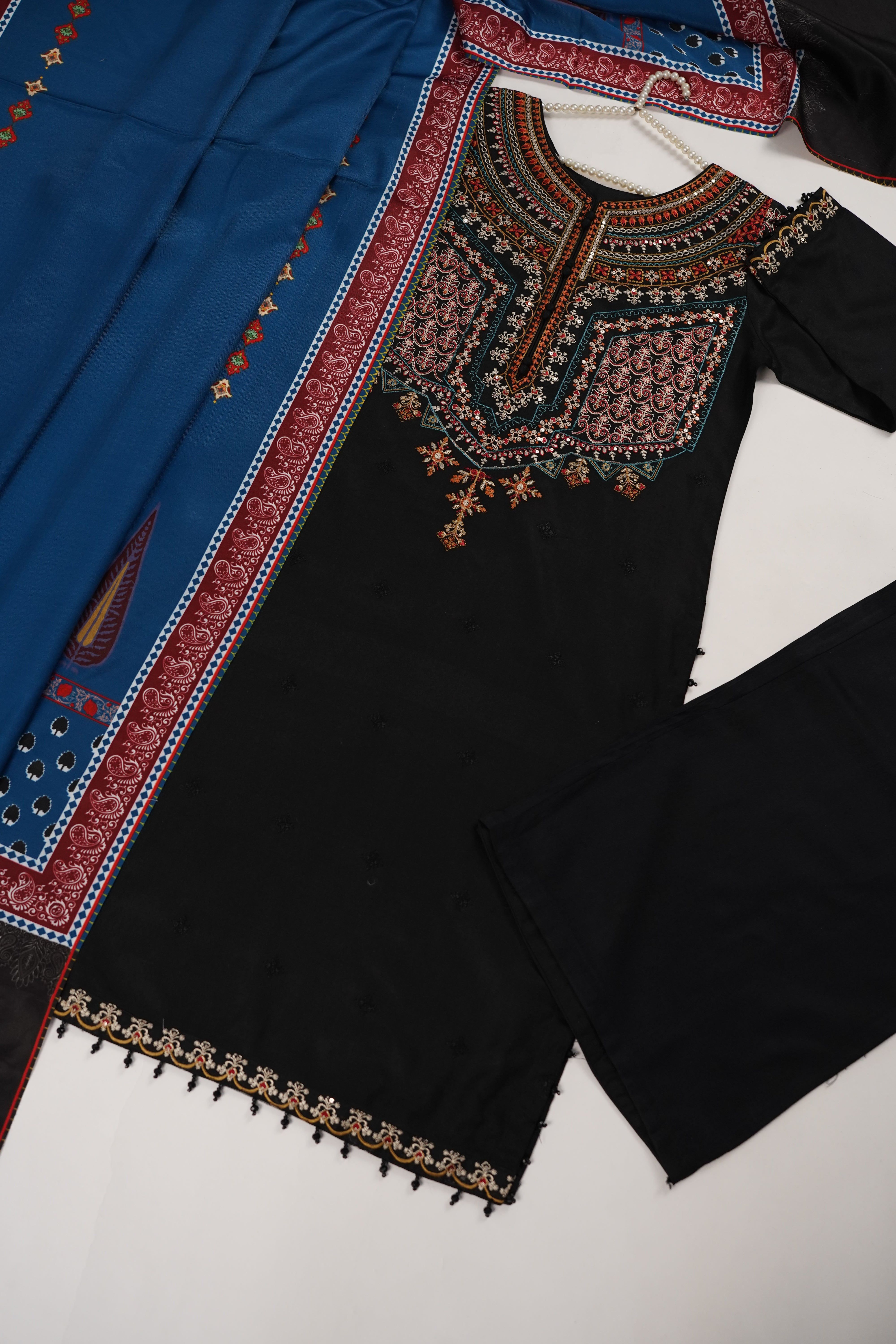 Premium dhanak material With fully embroidery work with fully sequins work with dhanak shawl 3 piece suit
