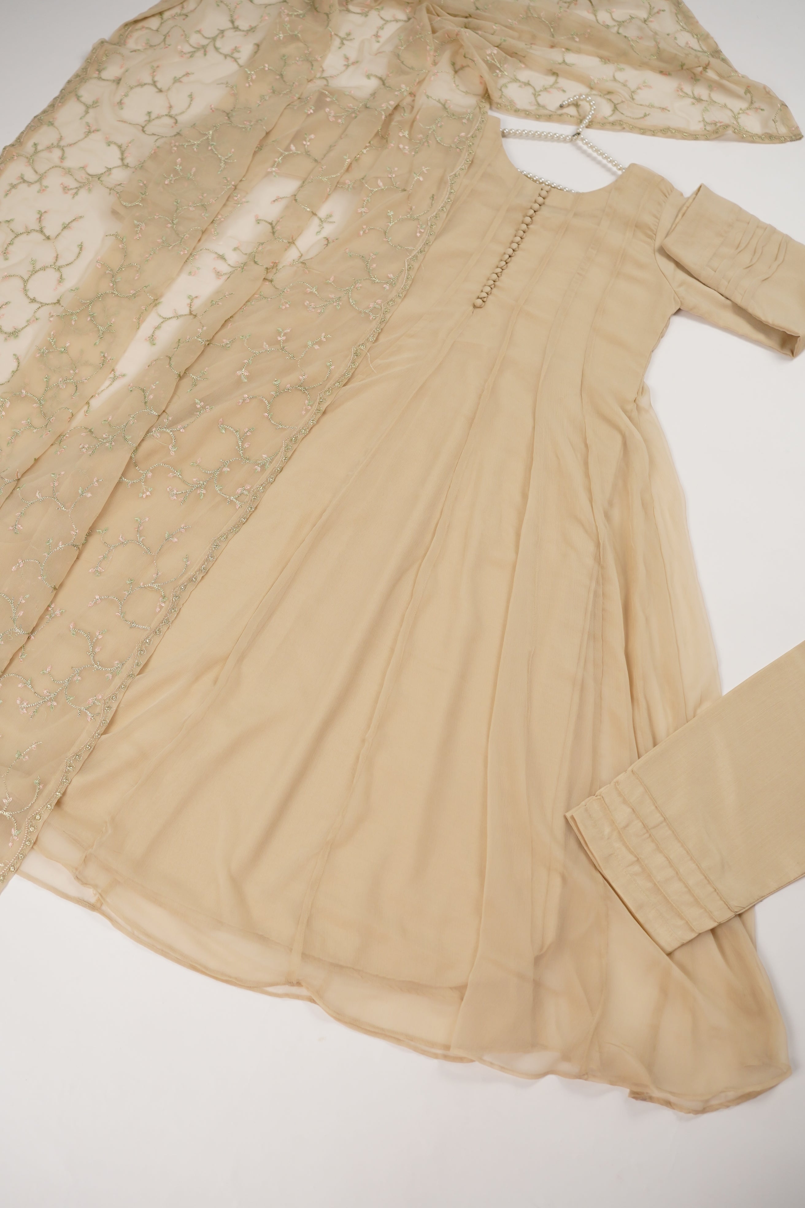 A Shafoon maxi dress is a flowing, floor-length dress made from chiffon fabric. It's known for its lightweight, sheer, and airy qualities, making it a popular choice for Part Events and For Eid  events. The dress typically features a loose, comfortable fit, with a variety of styles including those with sleeves With fully Adhaa Work